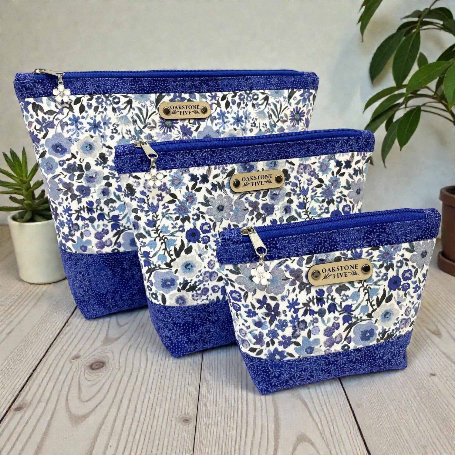 Blue Floral Bumblebee Artisan-Crafted Zipper Pouch – 3 Sizes